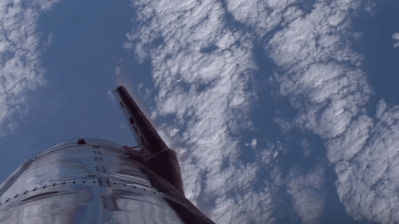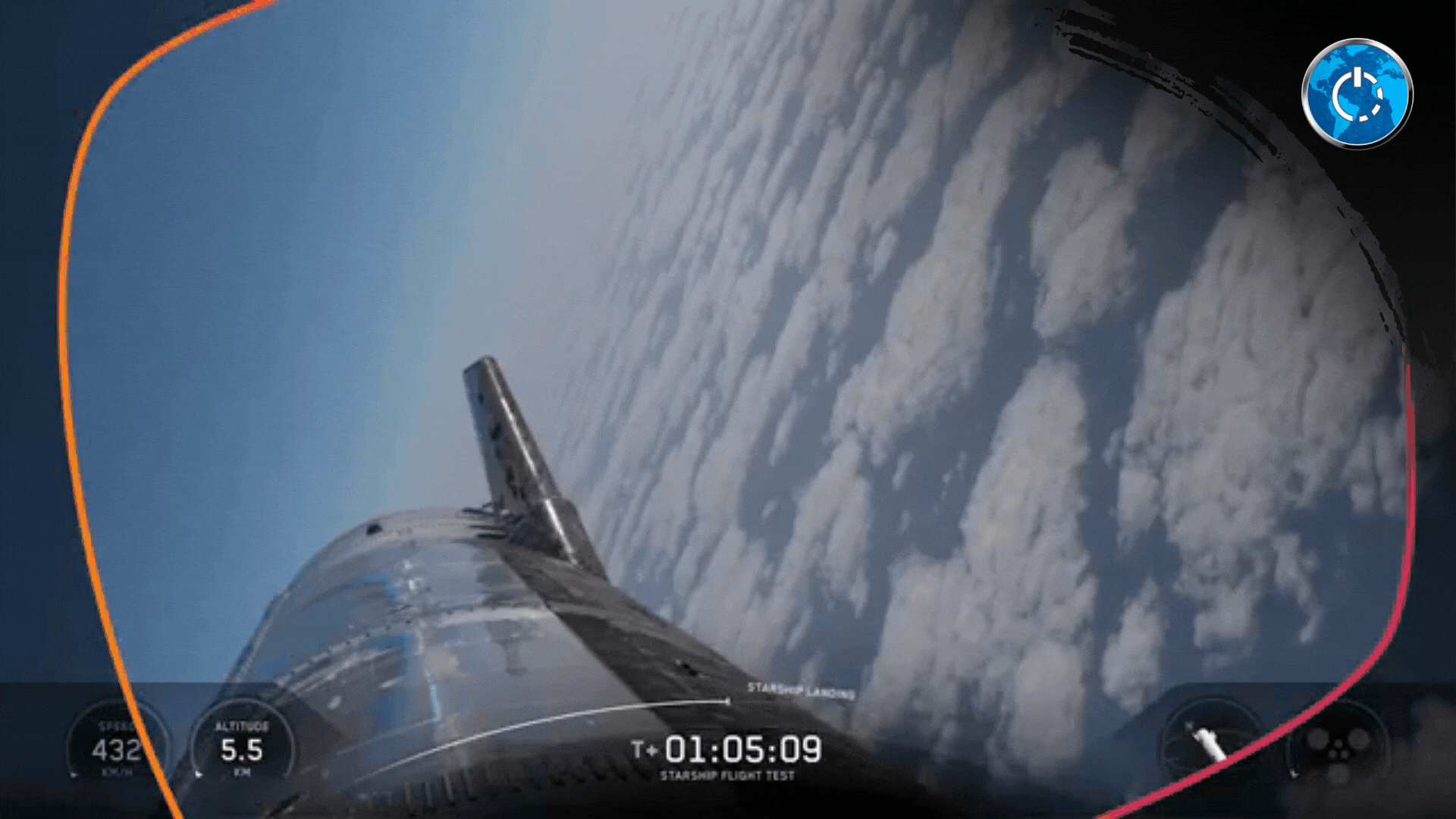 Durante o sobrevoo, câmeras acopladas aos motores e à lateral da nave capturaram momentos impressionantes enquanto a Starship reduzia a velocidade de reentrada — ainda a cerca de 10 mil km/h e a 40 km de altitude — antes de pousar no Oceano Índico.